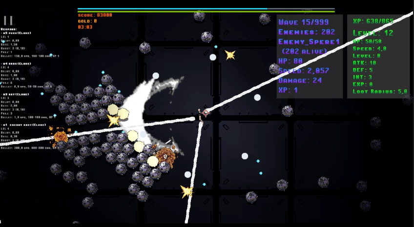 A fast-paced 2D auto-shooter where you fight endless waves of enemies, unlock powerful upgrades, and create broken builds, inspired by Vampire Survivors.